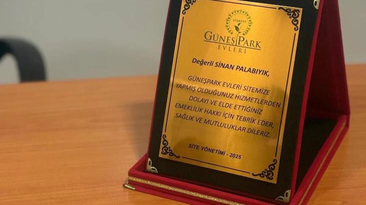 Güneşpark Evleri Sitesi, yedi yıldır güvenlik görevlisi olarak görev yapan Sinan Palabıyık'ın emekliliğe ayrılması nedeniyle anlamlı bir törene ev sahipliği yaptı. Görev süresi boyunca gösterdiği disiplinli, saygılı ve sorumluluk sahibi çalışmalarıyla site sakinlerinin takdirini kazanan Palabıyık'a, site yönetimi tarafından teşekkür plaketi takdim edildi.